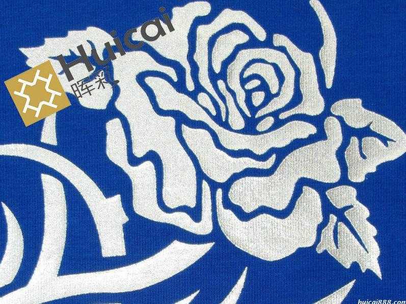辉彩印花材料生产的仿烫银浆它是以钛膜为介质,包覆二氧化钛的特殊物质,再经包覆上增光剂,折光率可达到3.6,所以仿烫银浆比烫银浆亮度更加高。
