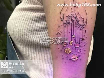 在日光下只是平淡不起眼的彩色小点,但只要用紫外线灯照射,它就会显现它独有的色彩。荧光纹身-满足隐性张扬,独有的荧光纹身(隐形纹身)采用全天然原料,既满足个性张扬又能避免尴尬的困扰,诠释一段个人成长记忆。
