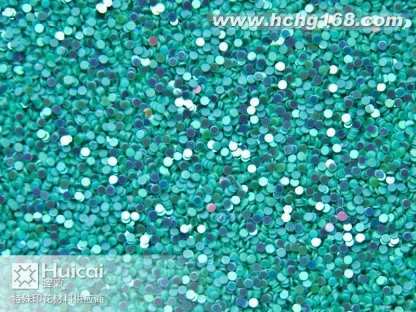 圆形金葱粉闪光片主要以喷撒的主式,用于纸,布,皮具等多种材料上,形成装饰或反光等特殊或醒目的效果。