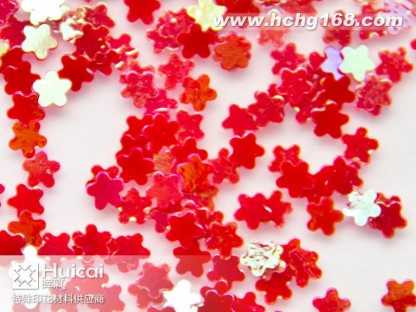 金葱粉:又名闪光片。包括铝质金葱粉,聚酯金葱粉幻彩粉,镭射金葱粉等。有铝质,PETPVC材质。大小规格(size)由1/25601mm)至1/830mm)。形状有六角形,四角形,长条针形和不规则形状,并有多种颜色可供选择。各种材质金葱粉可不同程度承受高温(由80*C180*C300*C不等) 。