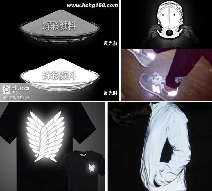 辉彩反光粉是生产反光布,反光贴膜,反光涂料、反光标牌、广告宣传材料、服饰材料、标准赛场跑道、鞋帽、书包、水陆空救生用品等新型光功能复合材料的核心原材料,可广泛用于道路、港口、矿山,消防等领域,作为安全标志,大大地提高了使用者的安全可靠性。